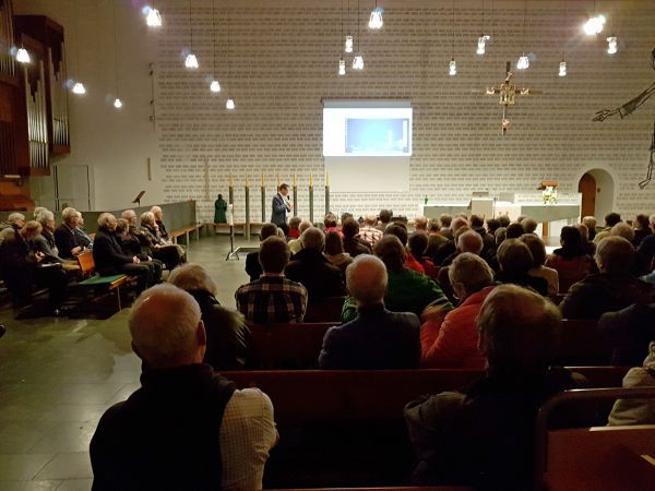 Manchmal führt es uns Meteorologen dabei auch an ungewöhnliche Vortragsorte - wie zuletzt am 03.02.2020 in ein bis auf den letzten Platz besetztes evangelisches Gotteshaus in Bonn (Foto).