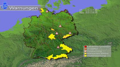 Ein fast schon ungewohntes Bild... In den letzten Wochen war die Deutschlandkarte fast durchgängig mit Warnungen vor strengem Frost oder Schneefällen überzeugen. An diesem Samstag Morgen sieht's dann endlich mal wieder relativ ruhig aus.