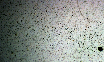 Die schönen Sonnenstrahlen locken nach draußen - zum Putzen. Auf einer besonderen Kunstoffoberfläche an unserer Wetterstation in Bonn, vergleichbar mit einer 'normalen' Fensterbank, sammeln sich über den Winter Partikel an, die mehr oder weniger schön und gefährlich sind. Die großen dicken Kreise zeigen Partikel, die so groß sind, dass sie nicht eingeatmet werden und damit recht ungefährlich sind. Sie sehen nur hässlich aus. Die kleinen Punkte sind Partikel die kleiner als 10 Mikrometer sind und damit in die Lunge geraten können. Noch kleinere Partikel können sogar in das Blutsystem wandern. Hier sollte man Vorsichtig sein.