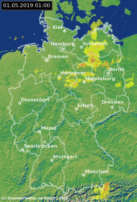 Radarbild von Mittwoch, 01.05.2019 um 01.00 Uhr