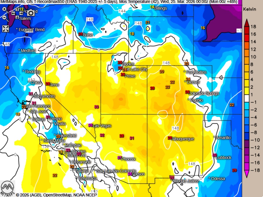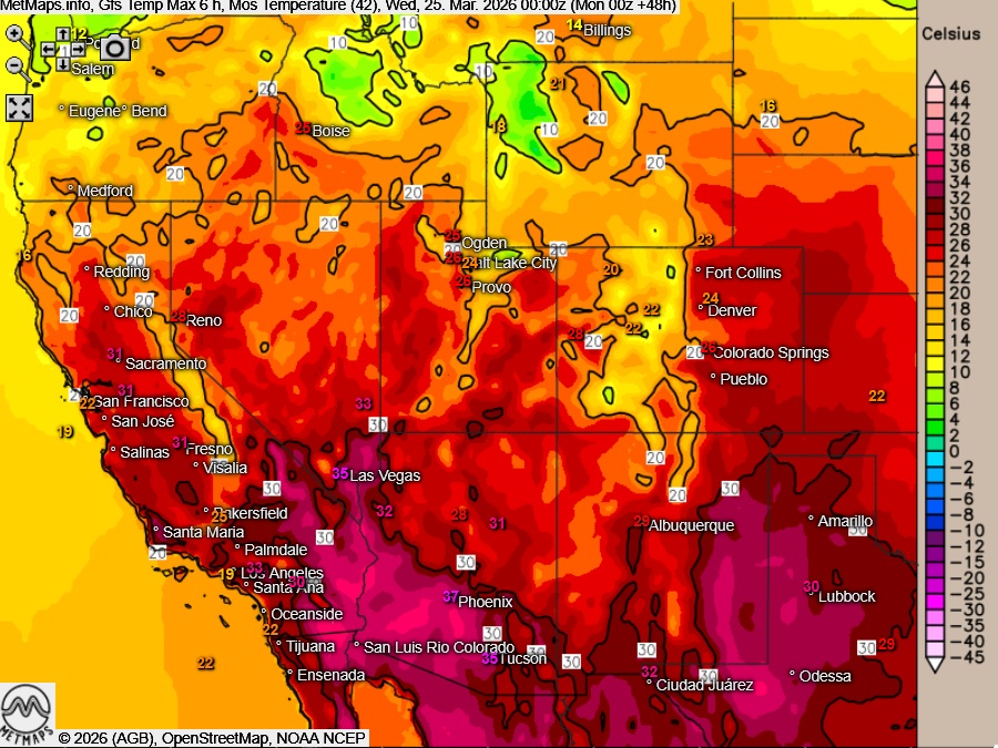 In Arizona wurde in der vergangenen Woche sogar ein neuer März-Rekord von über 43 °C gemessen – ein Wert, der normalerweise erst im Mai erreicht wird.