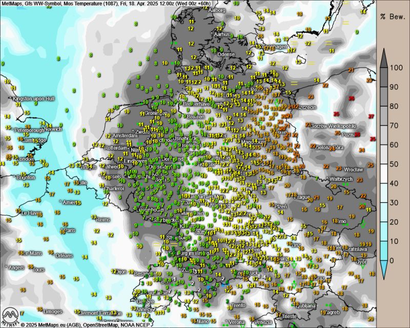 Und auch an Karfreitag wird das Wetter in Deutschland noch von großen Temperaturunterschieden bestimmt (s. Karte): Im Westen und der Mitte muss mit etwas Regen gerechnet werden, das Regenband reicht von Hamburg runter bis ins Breisgau. Sehr warmes und schönes Feiertagswetter bei Temperaturen um 23 bis 25 Grad gibt es dagegen nochmals in den östlichen Bundesländern.