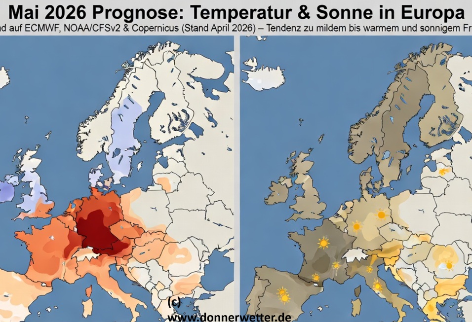 Der etwas weitere Blick in die Wetterprognosen ist natürlich immer sehr unsicher. Aber was der Mix aller Wettermodelle ergibt, ist durchaus interessant: demnach wird der Mai ein Wonnemonat "light" nach dem Modellmix NOAA, ECMWF usw. zusammen gerechnet: