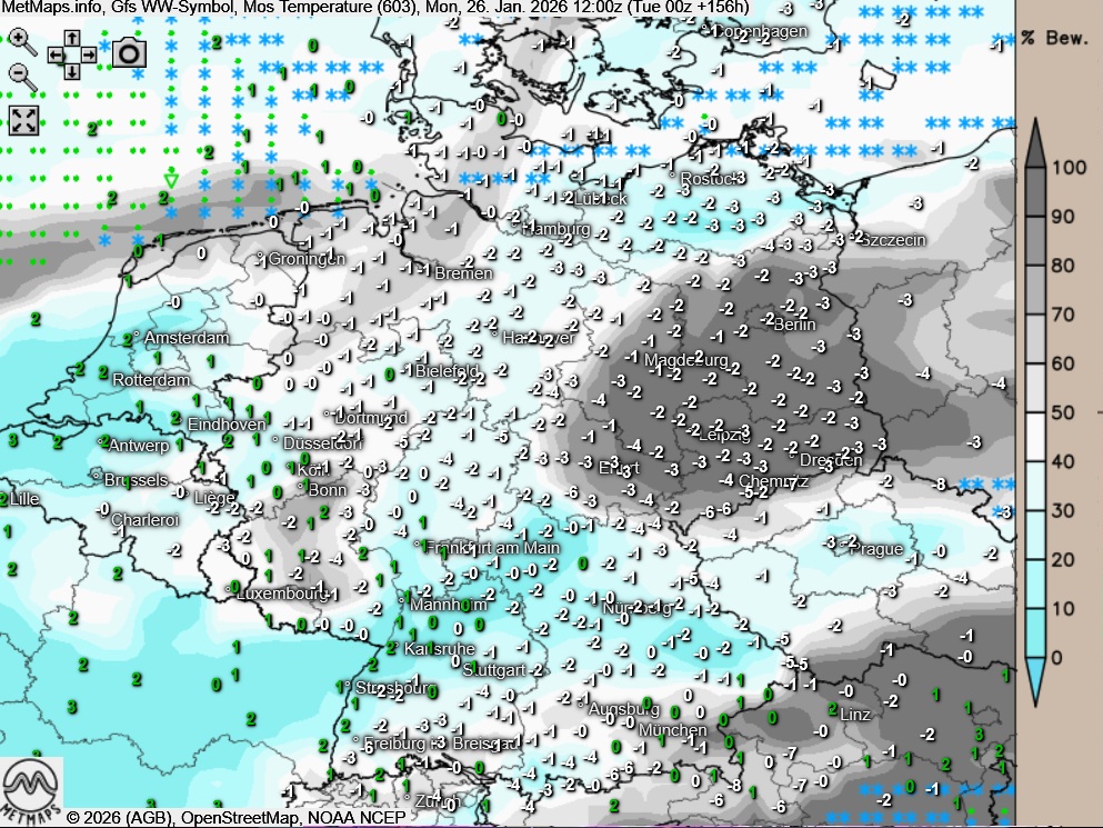 Zum Wochenende hin könnte zudem ein Tiefdruckgebiet vom Atlantik Einfluss auf das Wettergeschehen nehmen und gebietsweise Schneefälle bringen.