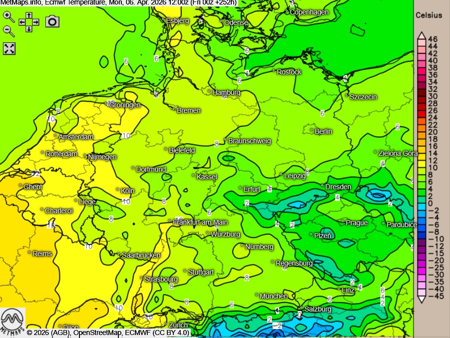 Wetter / Temperaturen an Ostermontag (12:00 Uhr) ECMWF