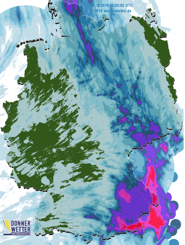 Zu Gewittern und stärkeren Regenfällen kam es im Süden Deutschlands in Oberbayern. Im Westen hat es überwiegend trocken gehalten. Die heutige Regenprognosen finden Sie hier.