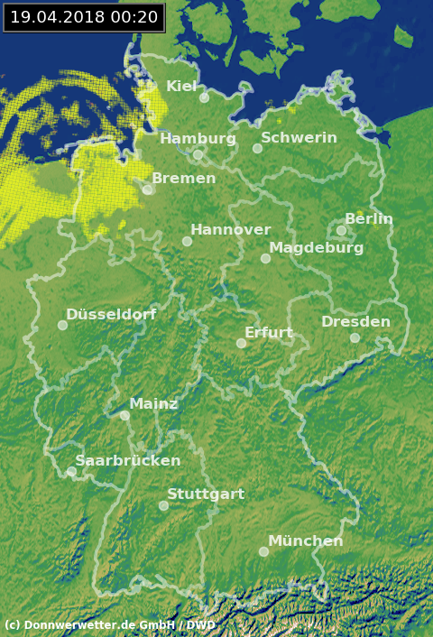 Das Radarbild zeigt aktuell im Nordwesten zwar schwache Signale. Hierbei handelt es sich aber um Fehlsignale. Regen fällt nicht. Der Himmel über Deutschland präsentiert sich sternenklar oder nur leicht bewölkt.