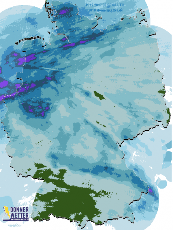Das Radarbild zeigt aktuell in der Nordwesthälfte leichte bis mäßige Signale mit Regen. Sonst ist der Himmel über Deutschland in der Nordwesthälfte meistens wolkenverhangen, in der Südosthälfte teilweise aufgeklart. Vereinzelt haben sich Nebelfelder gebildet.