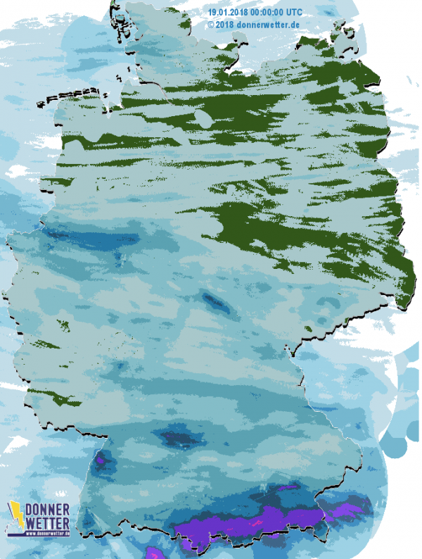 Heute fällt vor allem im Südwesten reichlich Niederschlag, in den Niederungen meist als Regen, im Bergland häufig als Schnee. Die Niederschlagsmengen liegen meist zwischen 5 und 20 Liter pro Quadratmeter. Sonst gibt es auch mal längere Pausen und einige freundliche Abschnitte.