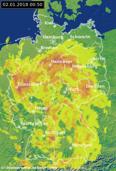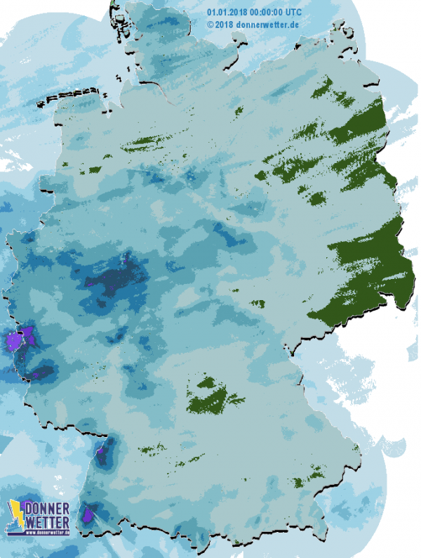 In der ersten Woche des Jahres 2018 überqueren uns von Westen weitere Schlechtwettergebiete im Wechsel mit kurzen Pausen. In etwas kälteren Abschnitten kann es im Bergland schneien, sonst fällt Regen. Außerdem drohen zwischendurch Sturmböen. Die Niederschlagsmengen liegen dabei pro Tag meist zwischen 5 und 20 Liter pro Quadratmeter, regional auch mehr. In Folgedessen werden die Pegelstände der Flüsse kontinuierlich weiter steigen.