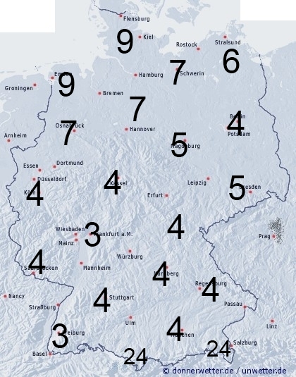 Benetzung durch leichten Regen im Norden und Feuchtigkeit