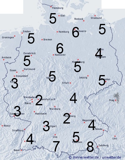 Auftretende Schauer sorgen in Deutschland für eine Benetzungsdauer von 2 bis 8 Stunden.