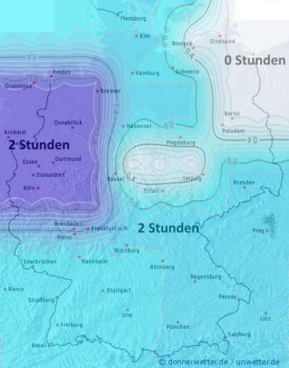 Wir stellen die Blattbenetzung generell in Stunden pro Tag auf der Karte dar. Durch die Lage des Feldes kann die Benetzungsdauer allerdings variieren.