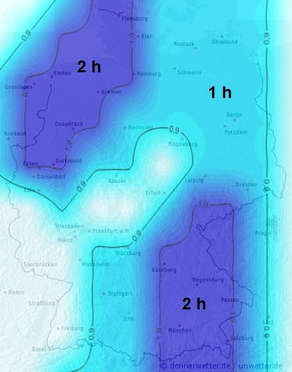 Wir stellen die Blattbenetzung generell in Stunden pro Tag auf der Karte dar. Durch die Lage des Feldes kann die Benetzungsdauer allerdings variieren.