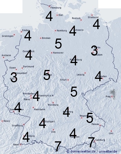 In Deutschland herrscht freundliches und niederschlagsfreies Frühsommerwetter. Leichte Benetzung entsteht nur durch nächtlichen Strahlungstau. Die Benetzungsdauer liegt allgemein zwischen 3 und 7 Stunden.