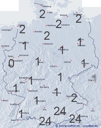 Wegen des trockenen und eisigen Nordost- bis Ostwindes liegt die Benetzungsdauer in Deutschland meist nur zwischen 0 und 2 Stunden. Lediglich bei einer vorhandenen Schneedecke werden am Boden bis zu 24 Stunden erreicht.
