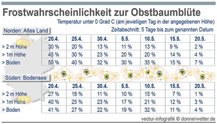 In der nachfolgenden Tabelle finden Sie die Frostwahrscheinlichkeit Nord / Süd zur Obstbaumblüte 2015!