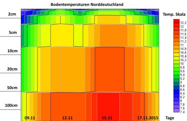 Bodentemperaturen vom 09.11.2015 bis zum 17.11.2015, für den Norden Deutschlands.