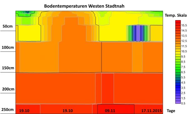 Bodentemperaturen vom 19.10.2015 bis zum 17.11.2015, für den Westen Deutschlands.