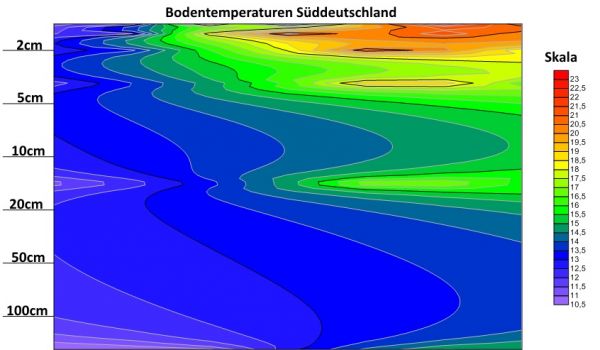 Bodentemperaturen vom 24.05.2016 bis zum 31.05.2016, für den Süden Deutschlands.
