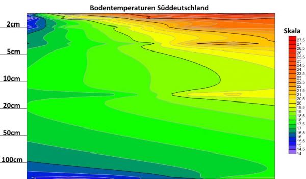 Bodentemperaturen vom 16.08.2016 bis zum 23.08.2016, für den Süden Deutschlands.