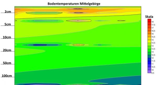 Bodentemperatruen vom 20.09.2016 bis zum 27.09.2016, für das Mittelgebirge.