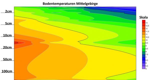 Bodentemperatruen vom 18.10.2016 bis zum 25.10.2016, für das Mittelgebirge.