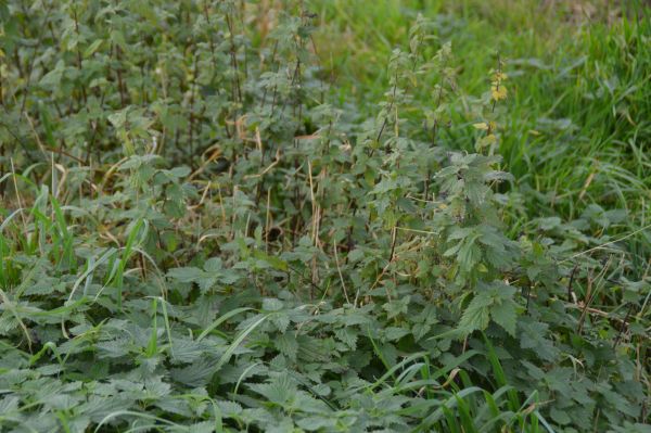 Etwa die Brennnessel; sie wächst nochmals stark nach, blüht im Gegensatz zur Großen Bibernelle aber nicht mehr.