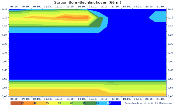 Unser Bodenfeuchtediagramm zeigt die Feuchteentwicklung in den nächsten Tagen in Westdeutschland. Große Regenmengen kommen nicht mehr hinzu. Die Böden trocknen ab und ab dem Wochenende können Arbeiten sehr gut durchgeführt werden.