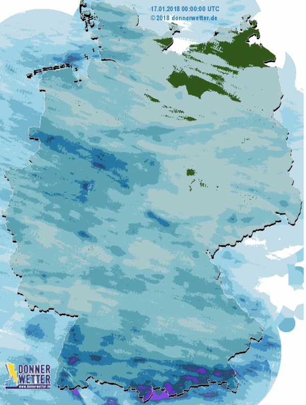 Das Radarbild von gestern zeigt zahlreiche Schauersignale mit teils kräftigen Regen- und Schneeschauern. Sonst war der Himmel über Deutschlands überwiegend wolkenverhangen, zwischendurch zeigte sich aber auch die Sonne.
