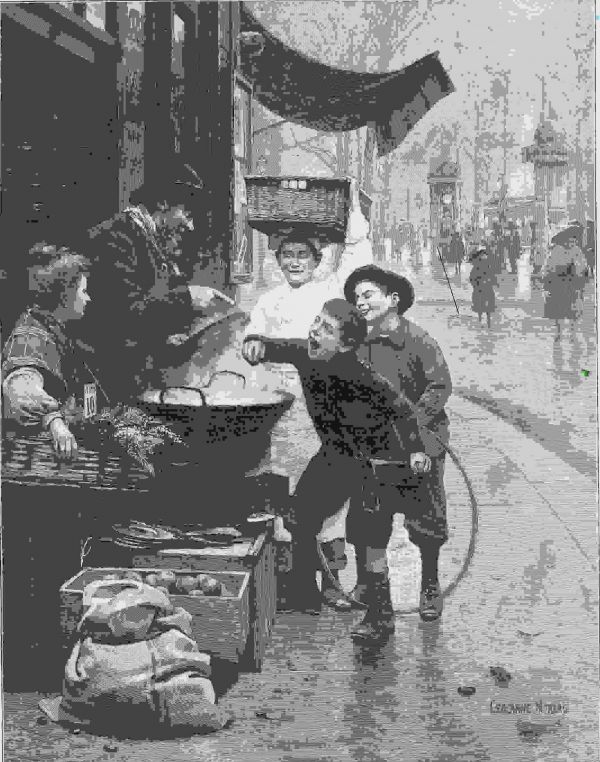 Maronenstand auf einem alten Stich