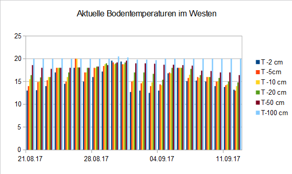 Bodentemperaturen vom 21.08.2017 bis zum 12.09.2017, für den Westen Deutschlands.