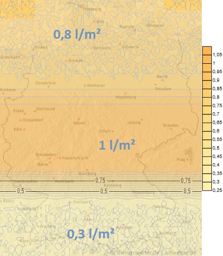 Heute fallen örtlich Regen- Schnee(regen)- und Graupelschauer. Die Niederschlagsmengen liegen dabei zwischen 1 und 5 Liter pro Quadratmeter. Im Alpenvorland und im Nordseeumfeld können aber auch höhere Mengen erreicht werden.