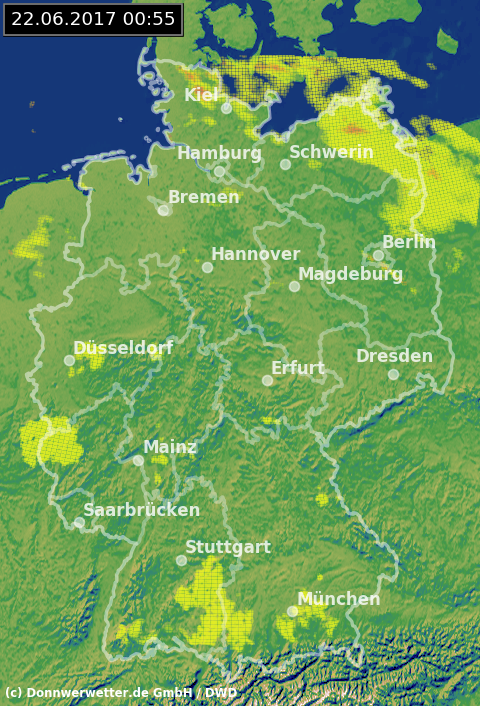 Radarbild von Donnerstag, 22.06.2017 um 00.55 Uhr