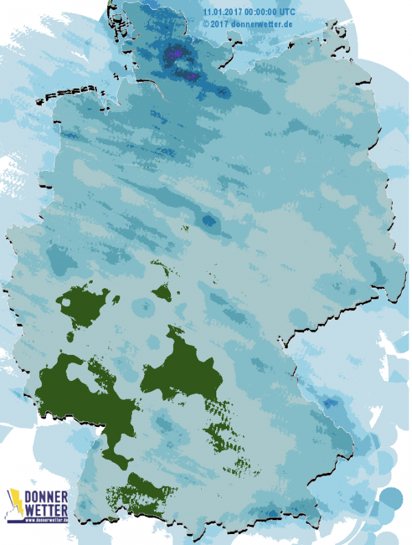 Gestern regnet es fast über der kompletten Bundesrepublik. Nur einzelne Teile im Rheinland sind trocken verblieben.