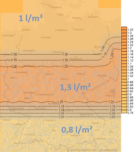 Heute muss erneut mit Schauern und einzelnen Gewittern gerechnet werden. Dabei sind Mengen zwischen 2 und 10 Liter pro Quadratmeter zu erwarten. Trocken bleibt es wohl nur im Nordosten.