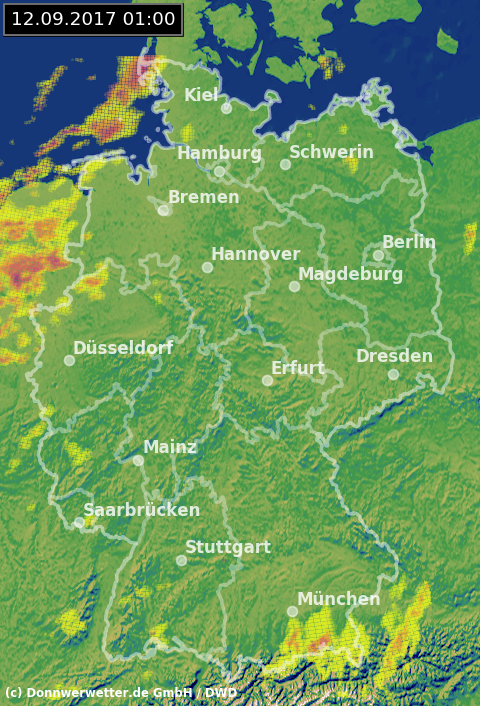 Radarbild von Dienstag, 12.09.2017 um 01.00 Uhr
