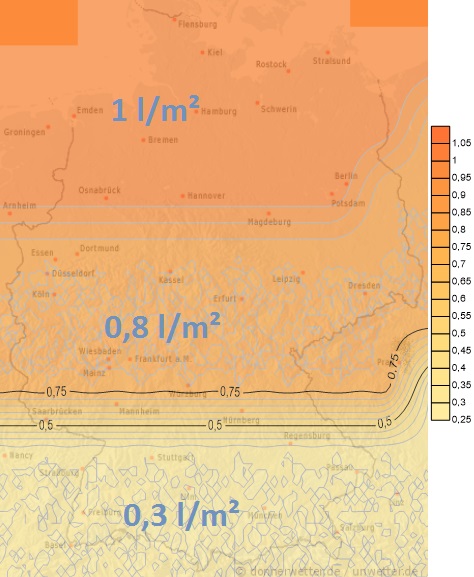 Tatsächliche Verdunstung in Liter pro m²