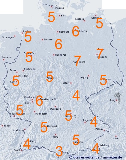 Die gemittelten Niederschlagssummen bis Samstag 00 UTC zeigen große Abweichungen. Während es ganz im Nordosten, sowie auf Rügen in der Regel trocken bleibt, können in den übrigen Bereichen Schauer und Gewitter für sehr unterschiedliche Niederschlagsmengen auf engstem Raum führen. Die zu erwartenden Regengüsse sind in den Mittelgebirgen und an den Alpen oft am höchsten. Bei örtlichen Unwettern mit Starkregen und Hagel sind allerdings schon in recht kurzer Zeit Mengen von bis zu 100 Liter pro Quadratmeter oder mehr möglich. Dann drohen Überschwemmungen und Schlammlawinen.