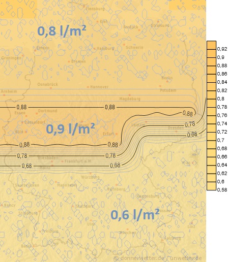 Am zweiten Weihnachtsfeiertag regnet es im Westen und Norden wieder häufiger, dabei sind Niederschlagsmengen zwischen 1 und 8 Liter zu erwarten.