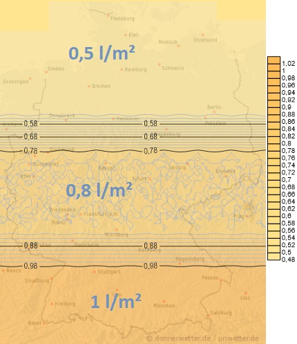 Tatsächliche Verdunstung in Liter pro m²