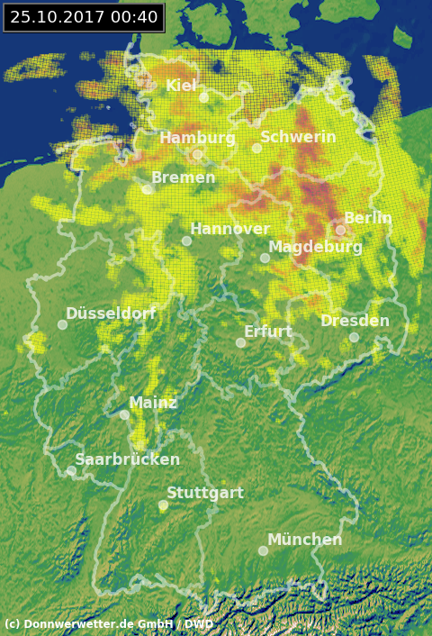 Radarbild von Mittwoch, 25.10.2017 um 00.40 Uhr