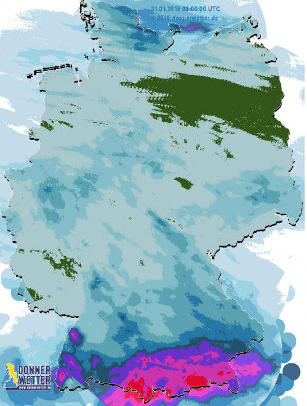 Der Tag gestern war in ganz Deutschland nass. Nur im Nordosten ist es wolkig und überwiegend trocken geblieben. Besonders viel Regen gab es an den Alpen. Heute liegen die Regenmengen niedriger.