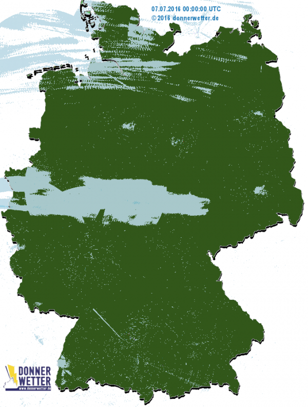 Lediglich in einem schmalen Streifen vom Niederrhein über Kassel bis nach Leipzig fielen am späten Nachmittag und frühen Abend ein paar Tropfen. Sonst blieb es bis auf wenige Ausnahmen in Niedersachsen und Schleswig-Holstein durchweg trocken.