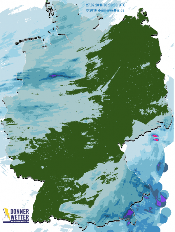Im Südwesten und Nordosten blieb es hingegen im gesamten Tagesverlauf trocken.
