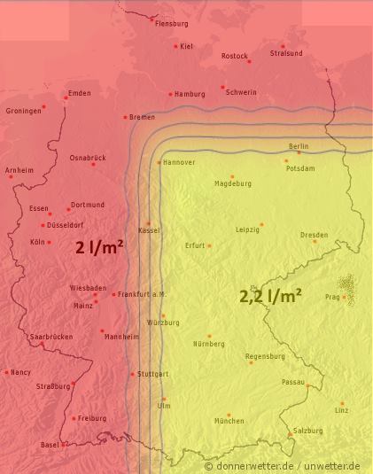 In der Nacht von Samstag auf Sonntag zog von den Niederlanden her ein Regenband auf Deutschland zu und überquerte in der ersten Tageshälfte zuerst weite Teile Niedersachsens und zog anschließend weiter über Sachsen-Anhalt, Thüringen und Sachsen bis an die polnische und tschechische Grenze. Dabei fielen jedoch in der Regel nur geringe Niederschlagsmengen, lediglich in kleinen Teilen Sachsens kamen bis zu 20 Liter pro Quadratmeter runter.