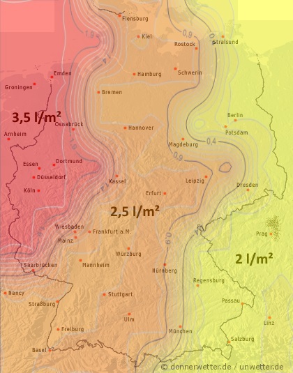Besonders betroffen war die Region an der Elbmündung rund um Cuxhaven. Auch in anderen Teilen Niedersachsens, in Baden-Württemberg und Sachsen kam es mancherorts zu unwetterartigen Regenfällen.