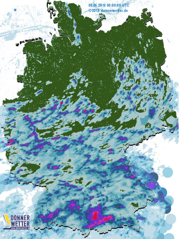 Nördlich einer Linie Münster-Berlin blieb es hingegen weitestgehend trocken. Nur in seltenen Fällen kam es zu vereinzelten, kurzen Schauern.