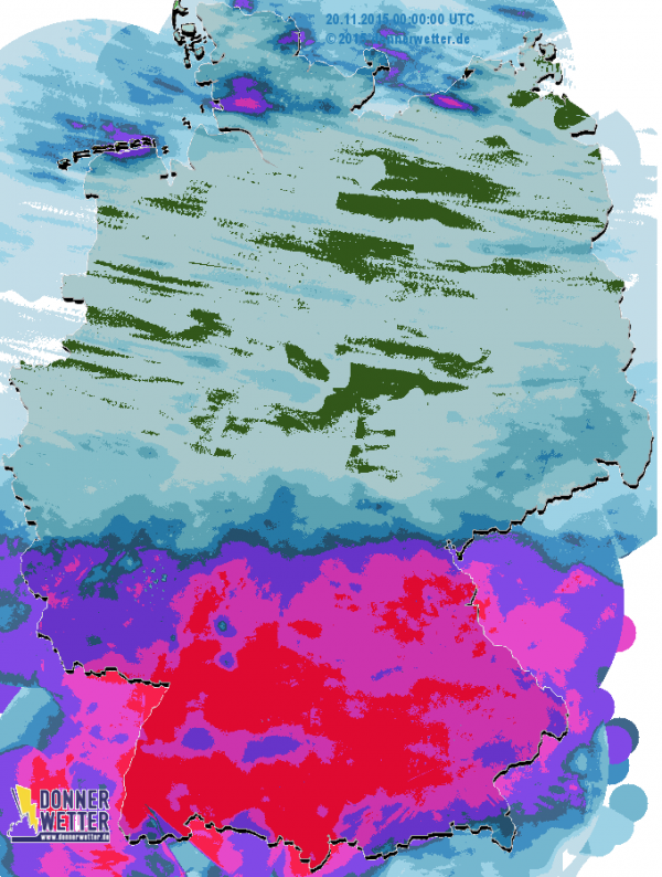 Extrem viel Regen gab es südlich der Mittelgebirge am Freitag. Auch heute schauert es wieder, allerdings gibt es wesentlich weniger Regen. Mehr dazu hier: