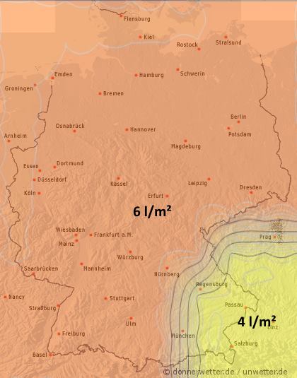 Lokal fielen dabei in kurzer Zeit bis zu 50 Liter Regen pro Quadratmeter. Im Lauf der ersten Nachthälfte klangen die Schauer dann weitestgehend ab.